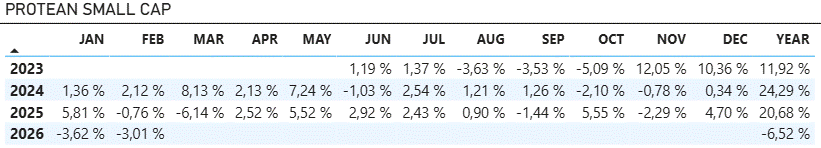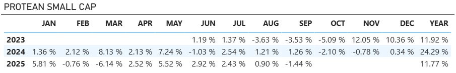 Halvårsredogörelse Protean Small Cap 2025Årsberättelse Protean Small Cap 2024Halvårsredogörelse Protean Small Cap 2024Årsberättelse Protean Small Cap 2023Halvårsredogörelse Protean Small Cap 2023